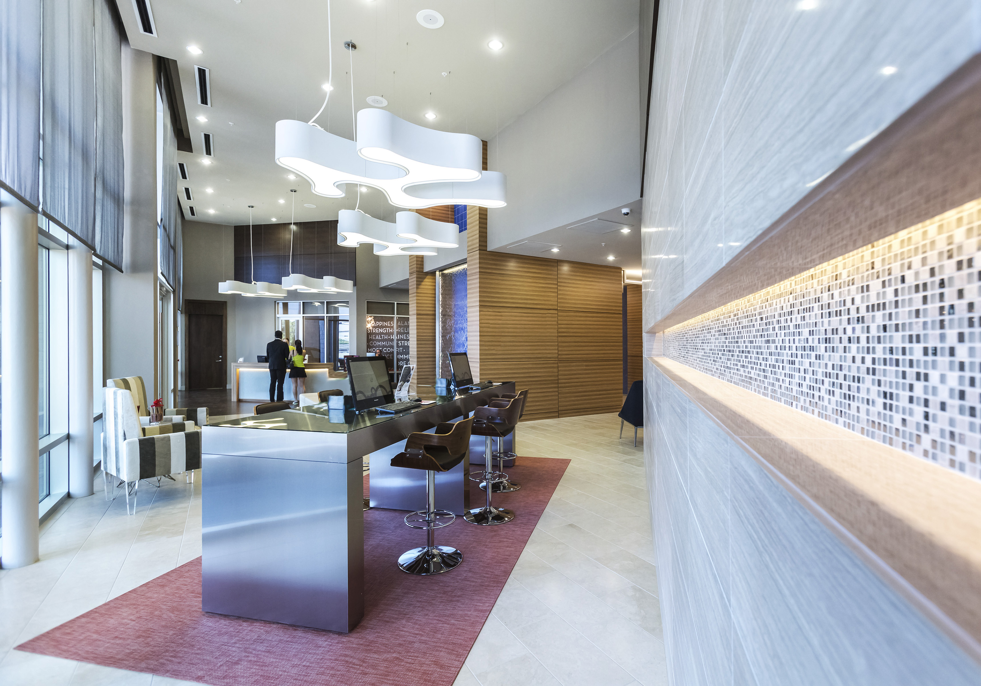 “The architectural interior design of The Vue is indigenous and inspiring,” Hager said. “We melded clean lines with warm tones, richly hued fabrics, sustainable woods and customized pieces to bring a level full of nature and the outdoors into a modern space.”