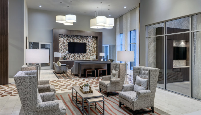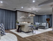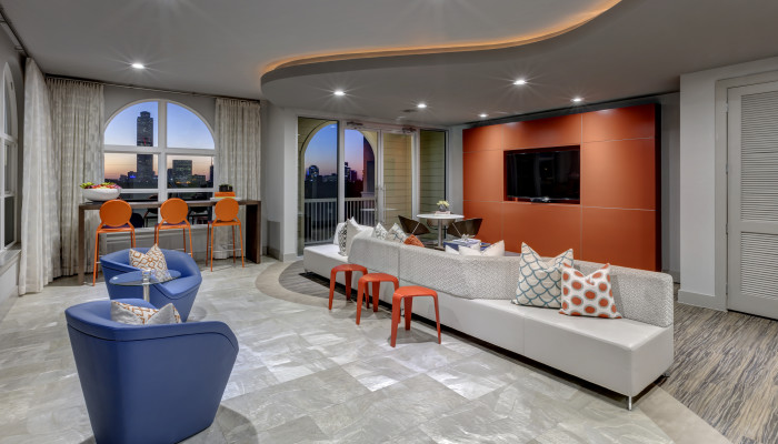 Aria at Willowick expresses a special atmosphere for gatherings and panoramic views of downtown. When walking into the Aria you are invited with great textured seating that invites guests in to give them a instant inviting feeling. The library is ideal for creative thinking and mingling and gives a great illusion of modern meeting comfortable. The ultimate goal was to create the ultimate setting, not just for living, but living a luxury lifestyle.