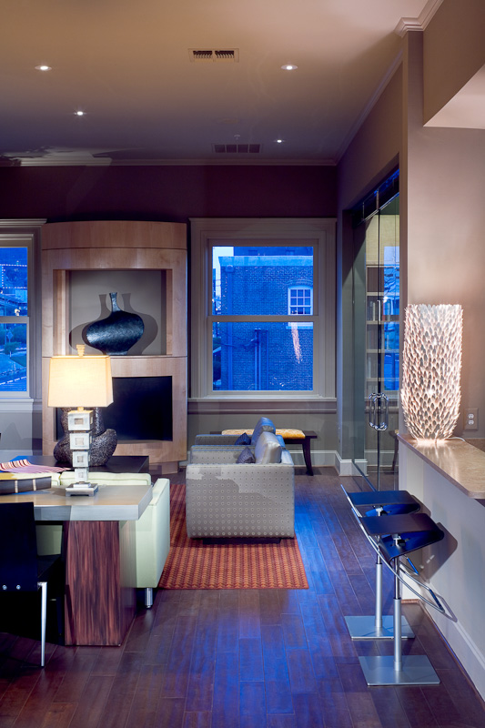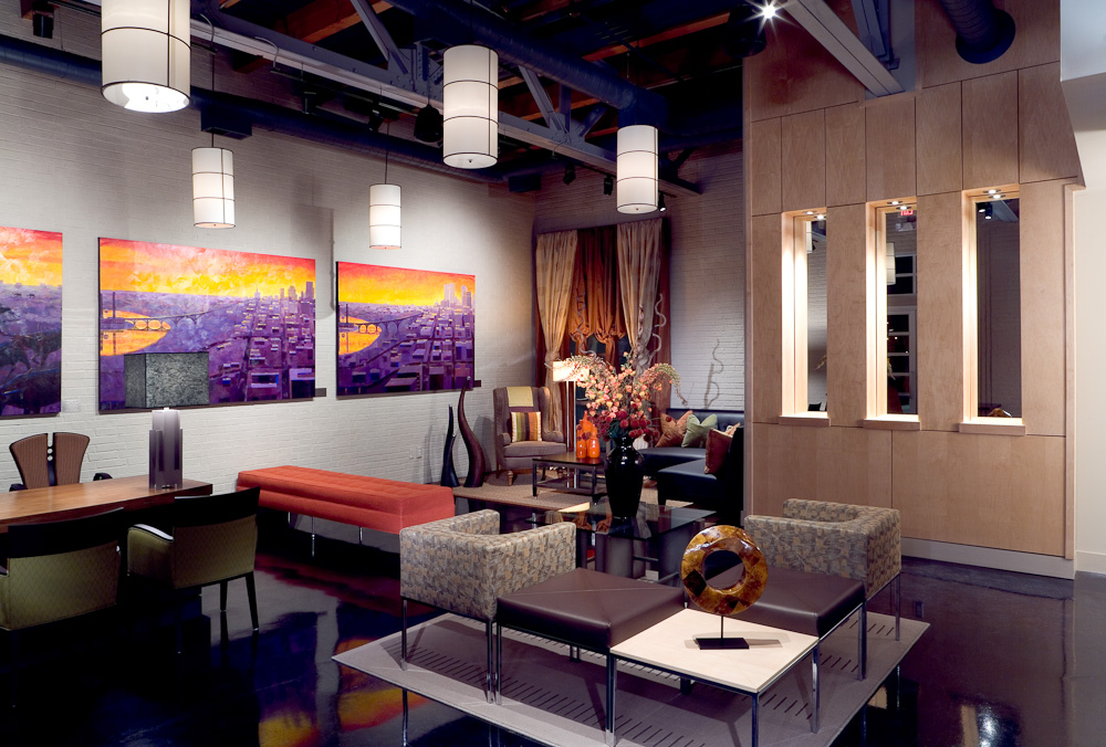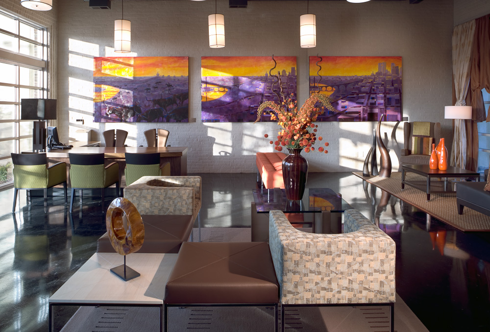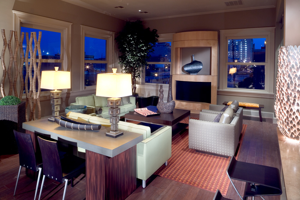 Fort Worth’s rugged charm meets soft, contemporary refinement in the spectacular interior design of the common areas, model units and unit interior finish options for The Depot, a unique railroad freight depot transformed into a multifamily apartment community.