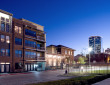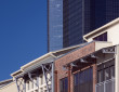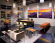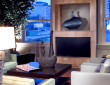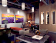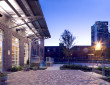 The spectacular lobby became one of the project’s focal points, finding a contrast to the historic setting with a modern interior of reclaimed exposed steel beams, low-slung furnishings, stained concrete floors, a soft contemporary color palette with expressive interior architectural details.