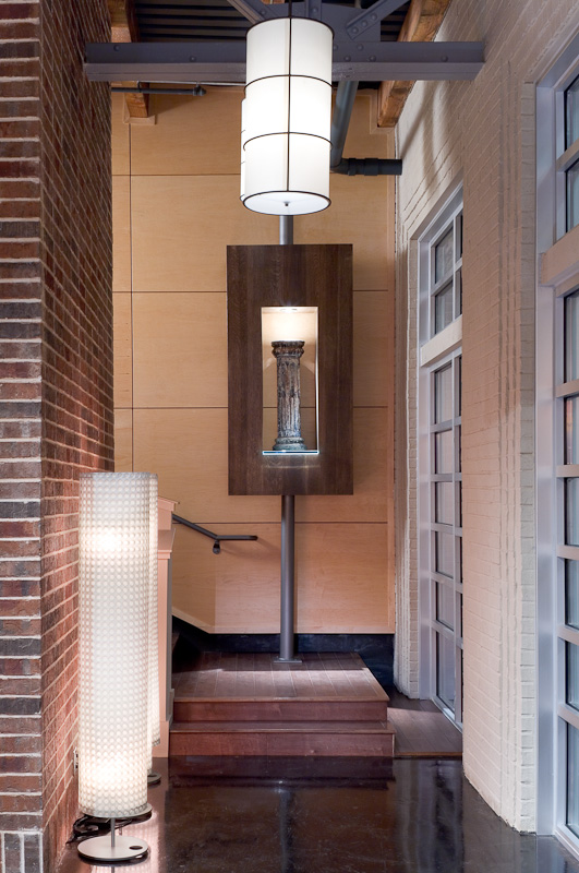 MDG respected the heritage of the 1911 property, choosing to adapt many of the original elements, such as the terra-cotta floor, exterior windows, heavy timber beams, steel trusses, interior walls, windows, and cabinets, as well as continuation of the exposed conduit to bind new and existing spaces.
