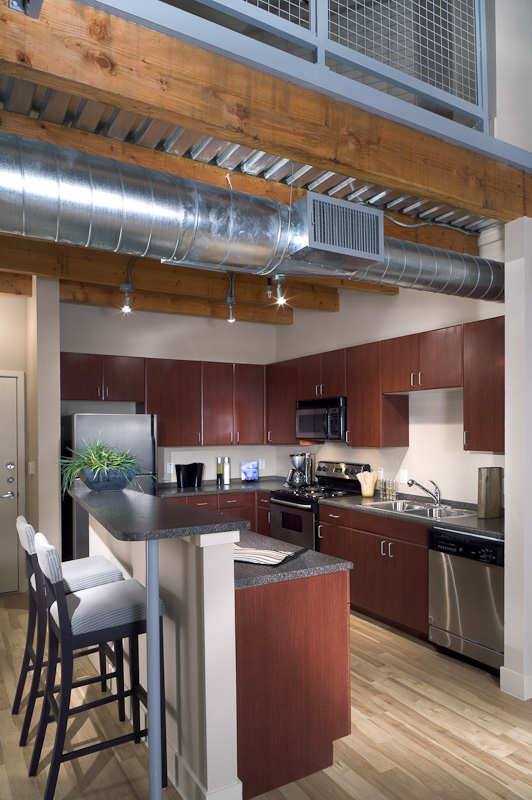The unit interiors include loft-like touches, perfect for this living space within walking distance to one of the most cultural cities in America.