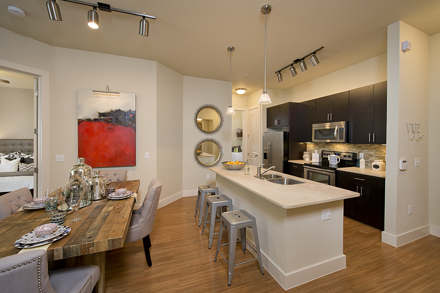The Vue at RidgeGate embodies an inventive interpretation of dimension, structure and shape that captures what life in Colorado is all about. Through creative and inscribed environments that aren’t trendy or over the top, the sleek “mountain modern” design is indigenous and inspiring – a relaxed atmosphere where all barriers are removed.