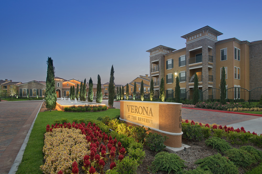 A Martin Fein Interests, Ltd. Property, Verona at the Reserve consists of 356 luxury apartment units. The two and three story garden style wood frame project include a clubhouse with a grand outdoor pavilion, game lounge with billiards and card tables and a Nintendo Wii™ gaming station, open club room with kitchen, latte lounge, movie theater, cyber café with multiple computers, and conference room, as well as a separate recreation center including a 24-hour fitness club, spinning & yoga studio and spa with massage rooms. The clubhouse and recreation center are oriented toward a landscaped lake with lighted fountain and surround an Infinity Edge Pool overlooking the lake. Lushly landscaped courtyards with BBQ grills and multiple dining areas add to the residents’ ease of entertaining.
